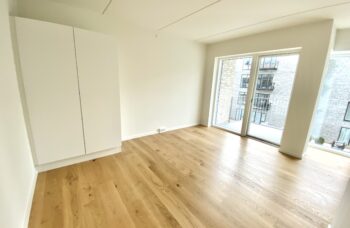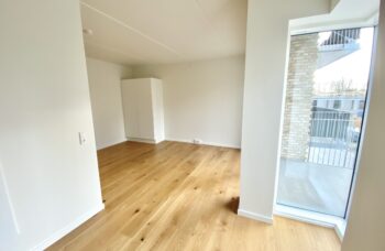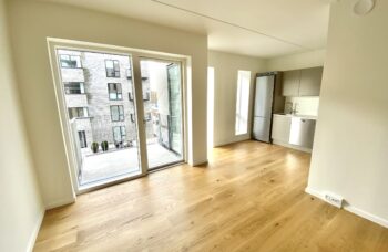 De store flotte vinduespartier giver et skønt lysindfald i hele lejligheden, og så er der udgang til terrasse.