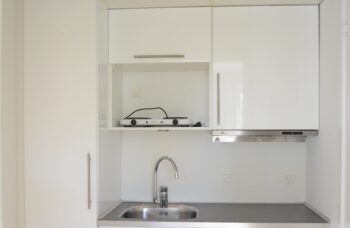 Lejligheden har entré med mindre men helt nyt køkken hvor der er enkelte hvidevarer.,