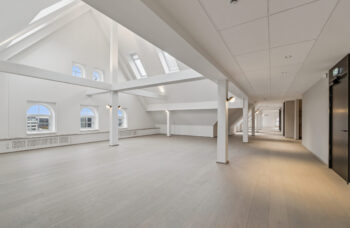 Her på de to øverste etager i Harvings Pakhus, kan du få plads til 100-130 arbejdspladser og en god forsyning af mødelokaler, loungeområder m.m.
