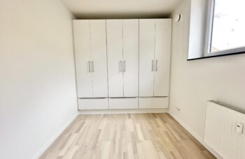 Endvidere er der godt soveværelse med stor skabsvæg med skydelåger.
