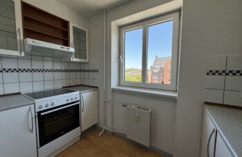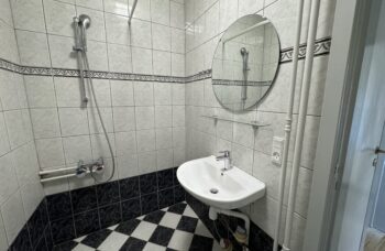 Lejligheden har lækkert flisebadeværelse med brus. Flot nyere køkken, godt med skabsplads og alle hårde hvidevarer, herunder opvaskemaskine.