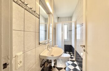 Flot flisebadeværelse med bruseniche.
