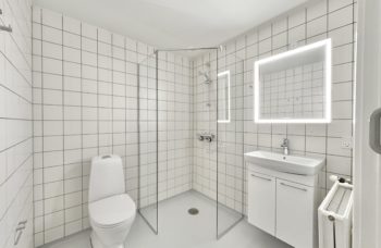 Lejligheden har god entré hvor der er plads til overtøj m.m. Godt flise badeværelse med brus.