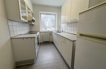 Lejligheden har pænt køkken med hårde hvidevarer.