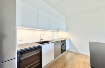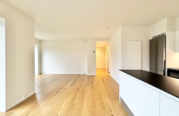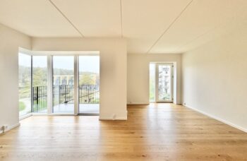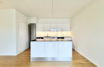 I lækkert nyt byggeri med dejlig sydvest vendt altan og med en skøn udsigt over parkens sø og fredsskoven udlejes 2 vær. lejlighed på 75 m².