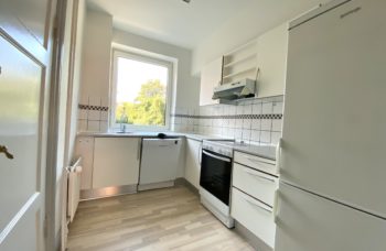 Lejligheden har flot nyere køkken med alt i hårde hvidevarer, herunder opvaskemaskine.