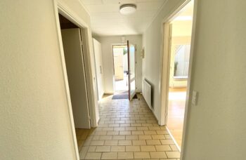 Rækkehuset indeholder god entré hvor der er brygges med vaskemaskine og skabe. Lækkert stort flisebadeværelse med bl.a. bruseniche.
