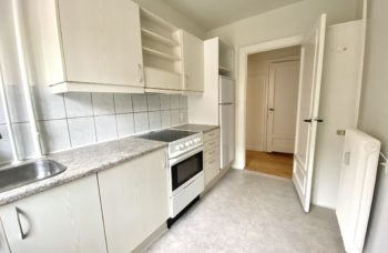 Lejligheden har pænt køkken med hårde hvidevarer.