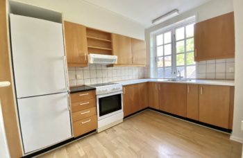 Godt køkken med hårde hvidevarer.