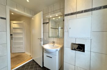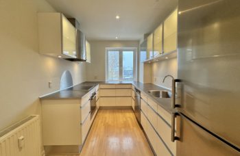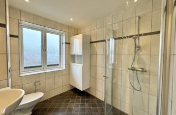 Lækkert nyt køkken med alt i hårde hvidevarer, herunder opvaskemaskine. Alle hvidevarer er i rustfrit stål. Stort nyt flisebadeværelse med bruseniche og skabe i hvid højglans.