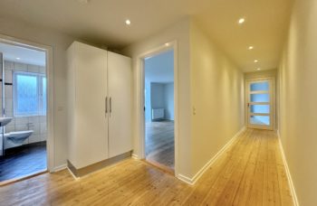 Lejligheden indeholder flot stor entré med adgang til samtlige rum, indbyggede spots i loftet og faste skabe.