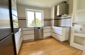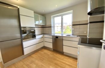 Lækkert nyt højglans køkken med alle hårde hvidevarer, herunder opvaskemaskine. Alle hvidevarerne er i rustfrit stål.