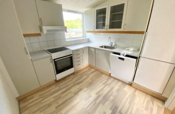 Der er pænt køkken med hvidevarer, herunder opvaskemaskine samt god spiseplads.
