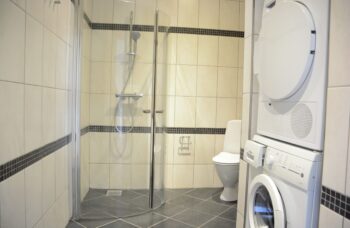 Ligeledes flot og nyt flisebadeværelse med bruseniche og egen vaskemaskine og tørretumbler.
