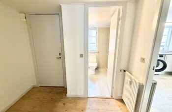 Der er afhøvlede gulve og dørtelefon.