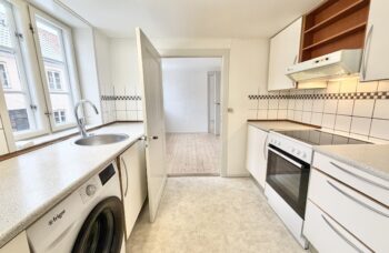 Beliggende i centrum af Nyborg og som sidegade til gågaden udlejes pæn 4 vær. lejlighed på 87 m² på 1. sal.