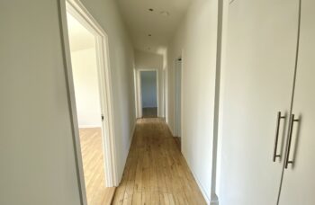 Lejligheden er indrettet med god lys entré med indbyggede skabe og indbyggede spots i loftet. Der er fra entré adgang til samtlige rum.