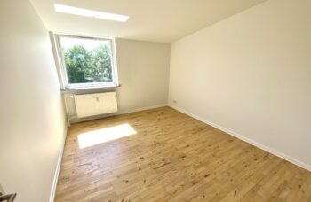 Stor lys stue med udgang til egen have/terrasse, godt stort soveværelse samt to gode børneværelser/kontor.