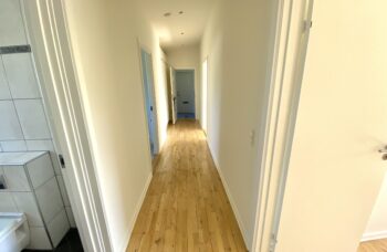 Lejligheden har flotte lakerede gulve og adgang til fælles rum med mulighed for at installere egen vaskemaskine og tørretumbler.