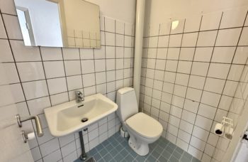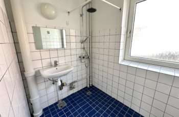 Lejligheden har godt flisebadeværelse.