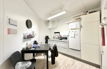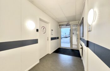 Der er adgang til lejemålet direkte fra ejendommens hovedindgang ved den store parkeringsplads. Der er til lejemålet toilet samt et mindre køkken med spiseplads. Derudover er der et mindre teknikrum.