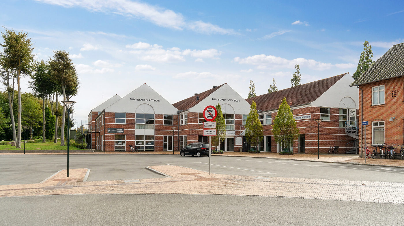 Jernbanegade 75-77, også kaldet Middelfart Midtpunkt, er en velplaceret ejendom beliggende i centrum af Middelfart og kun få minutters gang fra gågaden.