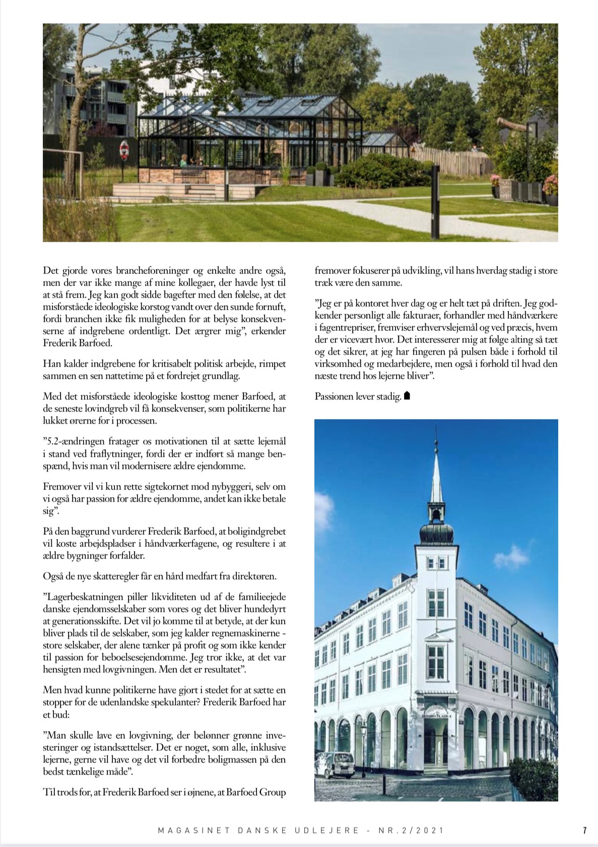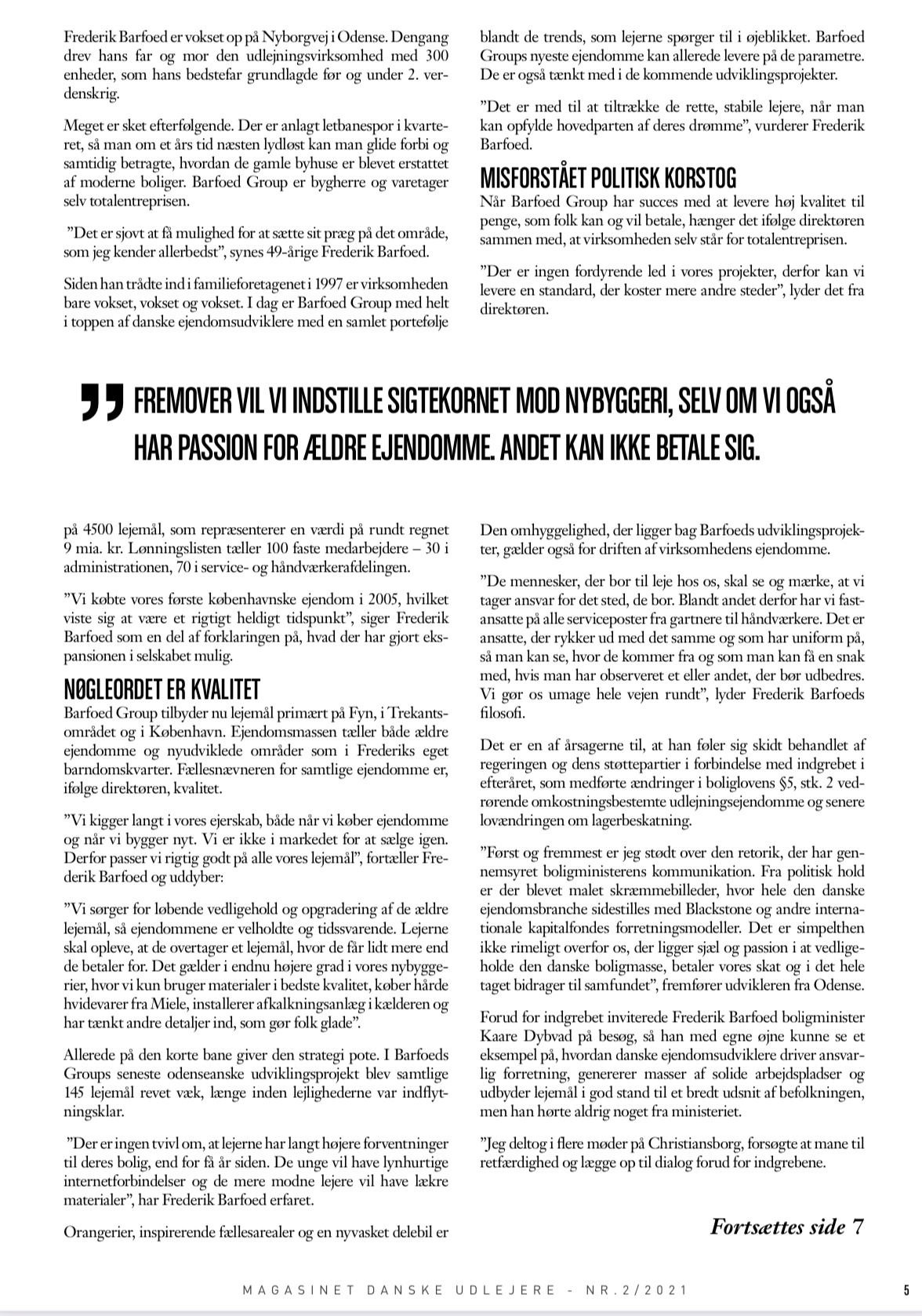 Barfoed Group og Koncerndirektør Frederik Barfoed fortæller i marts udgaven af Danske Udlejere om passionen for fast ejendom og om forkerte og ødelæggende lovindgreb anført af den socialdemokratiske regering. Regeringen åbner dørene for udenlandske kapitalfonde, som over de næste 10-15 år vil dominere det danske ejendomsmarked. Vi mener, at lovgivningen om øgede særskatter og besværliggørelsen af eksempelvis grønne moderniseringer i udlejningsejendomme, vil få mange udlejere til ikke at gøre noget, og så vil boligmassen forfalde, som man så for 20-25 år, hvor man var nødt til at indføre byfornyelse på statens regning. Det er et skridt frem og ti tilbage og resultatet af dårligt politisk håndværk.
